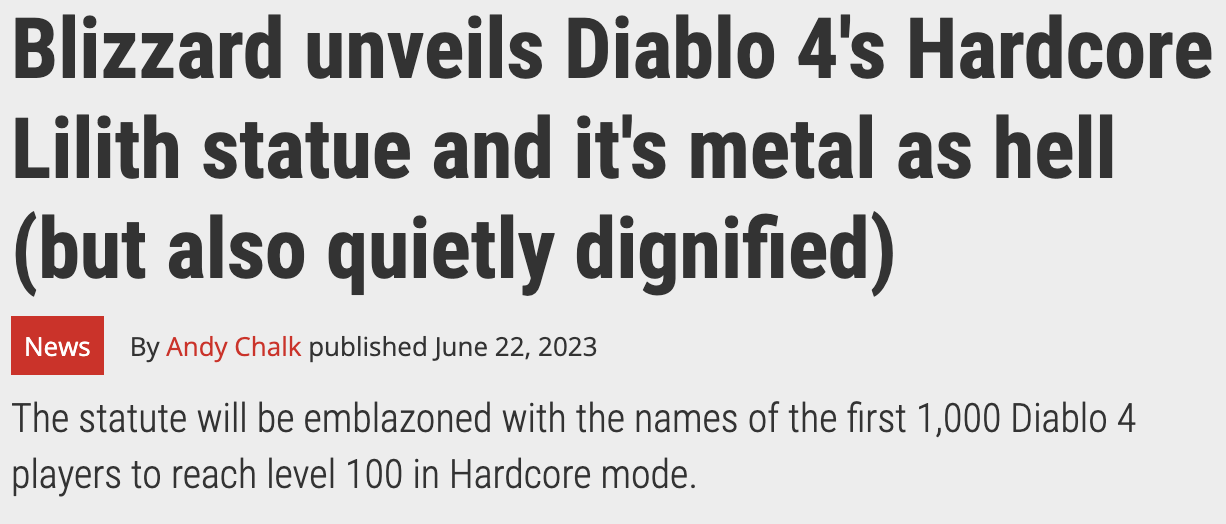 In addition to our eulogy campaign, we also challenged Diablo’s most dedicated gamers by giving them a spot on a Lilith statue if they beat the game in hardcore mode.